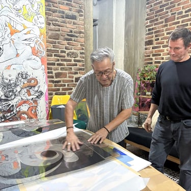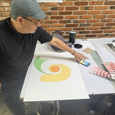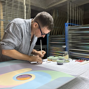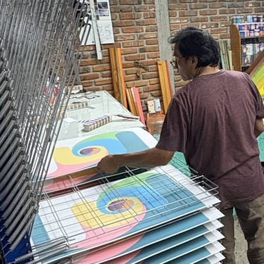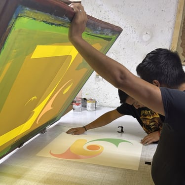 Translating the highly saturated bold colors and curvilinear hard edges of Gannon's paintings into oil-based prints requires extraordinary technical proficiency. For this reason, Gannon traveled to Mexico City to work directly with Maestro Arturo Negrete and Taller75Grados, whose silkscreen craftsmanship is unparalleled in Latin America.